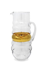 This glass pitcher, with its linear design and gold stripe, is the perfect addition to your glassware collection. It's made with top quality materials and designed to give a polished look with a beautiful visual presence. The gold stripe accents brings a touch of elegance and class to any gathering. Enjoy your favorite drinks with style and grace!