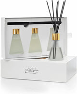 This is a set of three 30ml reed diffusers. The diffusers comes packaged in beautiful gift box. Each diffuser includes reeds. These are very small and are cute and appropriate for powder rooms, closets, small bathrooms, etc. They are made with high quality fragrance oil and are enjoyed by all.
