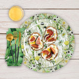Enhance your dining experience with this stylish, reusable 15” round vinyl placemat. Featuring a vibrant leaf pattern inspired by the adventurous spirit of Costa Rica, it brings a touch of nature to your table setting, perfect for both indoor and outdoor dining. Made from wipeable vinyl, it is easy to clean, providing a practical and beautiful solution for protecting your table.