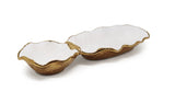 White Hammered 2 Section Relish Dish W/ Gold Scalloped Edge VRD4612