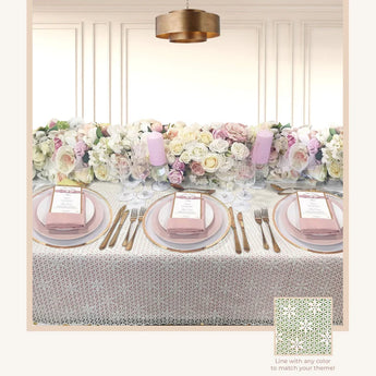 Enchant your guest with this soft, lightweight and easy care petal eyelet tablecloth. Imbue the setting of the room by using different seasonal color liners, which will highlight the flowers on the lace, instead of limiting yourself to one color and one look. The modern geometric petal pattern combined with the burst of flowers will complete your dining experience.