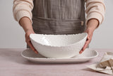 Large Oval Bowl in our Wave Collection. Perfect for serving a delicious garden salad, roasted potatoes and vegetables or fruit. Sleek white-toned superior quality melamine. Great for your indoor and outdoor activities. Food safe, freezer safe, dishwasher safe. Easy Care.