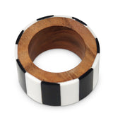 WOOD BL/WH NAPKIN RING S/4 NR3876