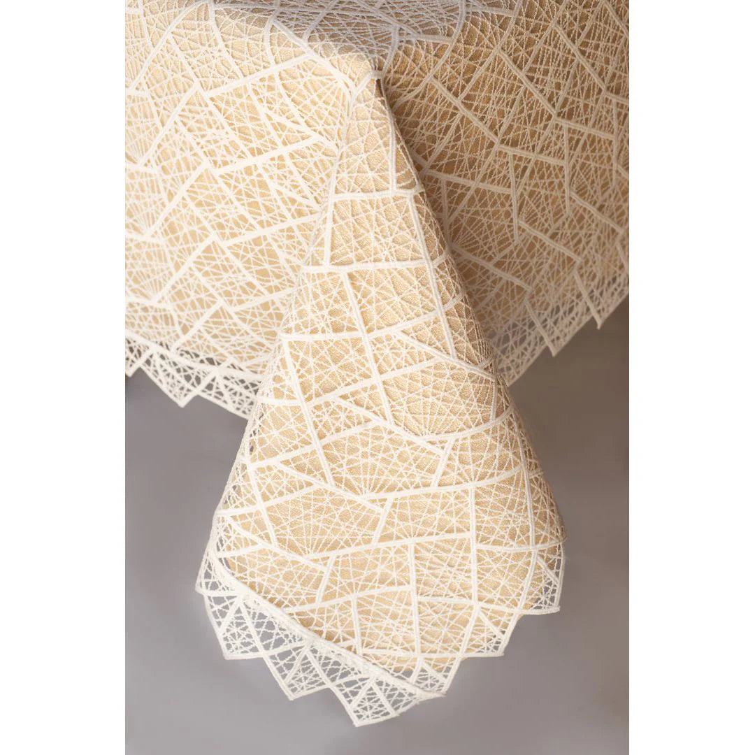 This magnificent detailed lace cloth is a stunning backdrop to a beautiful elegant table.