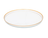 This Set Of Four Glass Chargers With Gold Rim design is suitable for elegant and festive occasions. It is crafted from quality materials, making it food safe and durable for long time use. Present it to your friends and loved ones as a specialty gift upon their celebration or party.