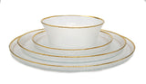 This set of four glass chargers with gold border design is suitable for elegant and festive occasions.